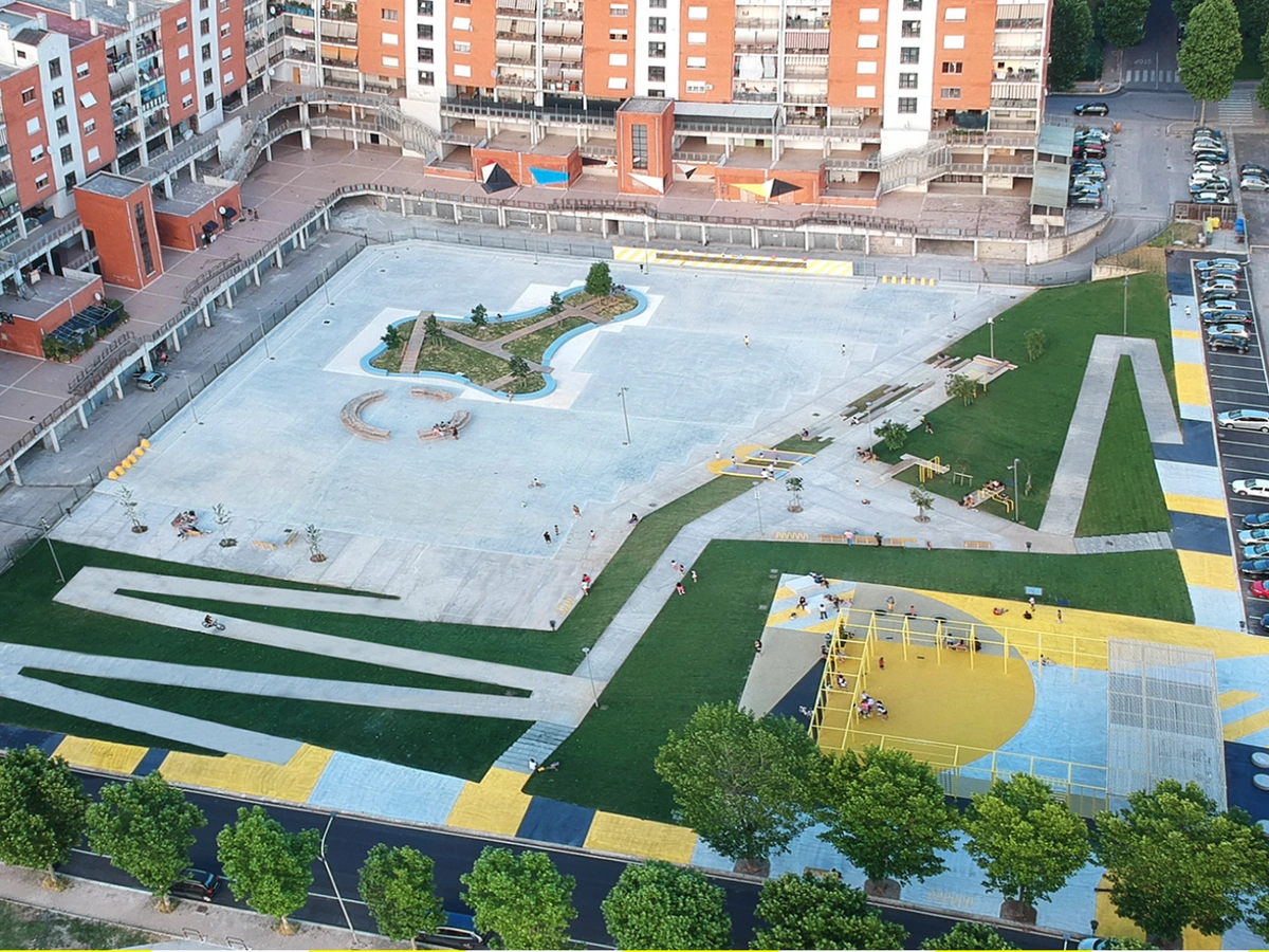 This approach is now spread all across the world, but especially in Europe. The more recent interventions such as Este No Es Un Solar in Saragoza (2007) or Prossima Apertura in Aprilia (2021), aim to re-define urban spaces with the inclusion of playful suggestions, whether they are drawings on the ground or real devices designed to play. In the last ten years, asphalt art projects and playscapes became mainstream, but a comprehensive publication is still missing.