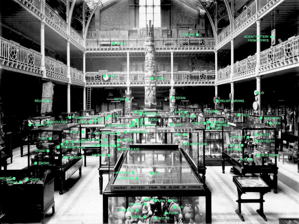 Using open-source AI tools, we then reorganize museum metadata through natural language processing and clustering, surfacing alternative, relational constellations of meaning and identify the colonial spatial grammars. These insights form the basis for two outcomes: