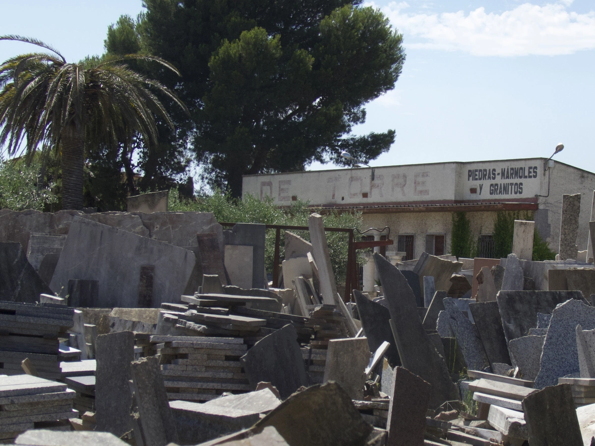 1 March 2022, a historic stone yard in Catalunya was 2 weeks away from demolition when, at the last moment, Leleni Studio negotiated a short term lease to prove the potential re-use of over 2000 m2 of marble, granite, travertine and fossil limestone.