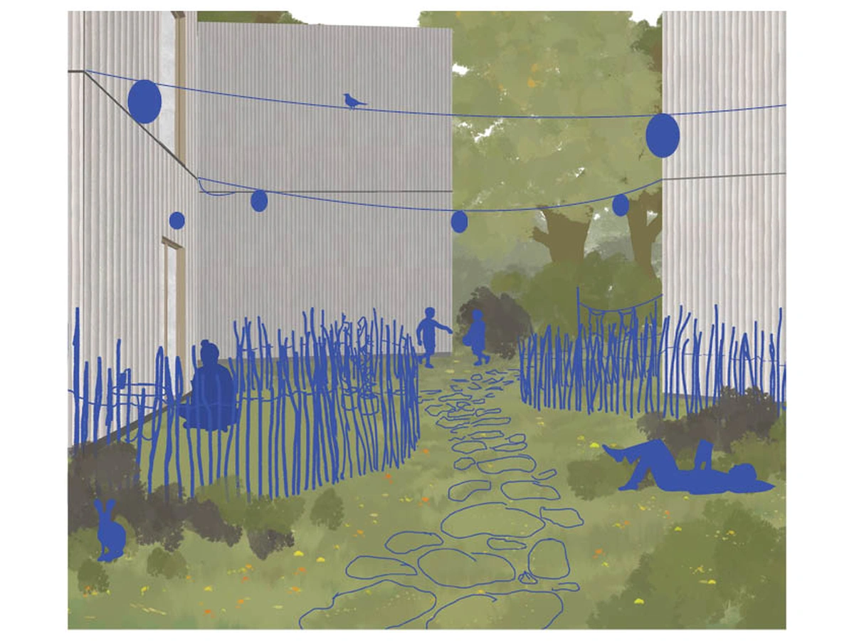 This project mainly focuses on the design of responsible living in a cycle with our surroundings, with nature, ecosystems, and all of the people. The focus is to create a space for community of people with semi-public spaces, common spaces and mainly to have permaculture as the remaining nature and greenery around the homes without any perfect lawns and demanding green spots. Permaculture is the most important part of the project because it interfere with community, as the main point of permaculture is to live in a cycle, not in isolation and anonymity, and that every person, object, nature is equivalent and connected within each other. My project doesn't focus only on creating some good rainwater system for example. It goes to the main core of what and who and how we can create responsible society, which can naturally lead to the other sustainable and technical options.