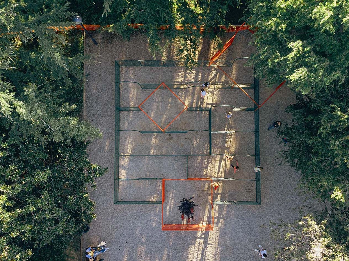 Following these objectives, the solution adopted was a simple labyrinth. It had all the necessary qualities: it could be manufactured by a local blacksmith, the simplicity of the materials and the system made it much cheaper to build, and its design, inherited from the romantic European labyrinths, allowed for an intergenerational and inclusive game.