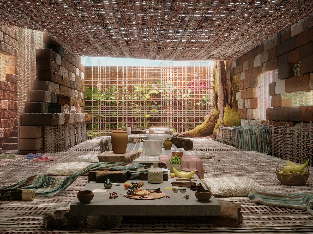 Oral histories and present-day documentation are the tools used to explore the role and value of Huaorani Women, both as nurturers and constructors of the Amazon forest. The work proposes the methodology of "expressive camouflage" as a form of self-sufficient inhabitation resulting in a parallel understanding of a chakra as a garden of knowledge dislocated to the Andes. A cultural typology originating from the various indigenous communities of the Amazon and a self-sufficient ancestral strategy. The garden is occupied mainly by women, symbolizing the interconnection of living things, a place to host memory and ritual. Most significantly the ritual of weaving. Through spatial interventions, the garden encourages impenetrability and confusion, offering space for complex relationships and disparate knowledge to coexist. The Yasuni Park is approached only as a data bank, while the project intervenes in Quito as the first form of interaction with a distant territory. Engaging with a foreign heritage through observation and collaboration. As a whole, the Chakra is a frame for human coexistence, shaped by cycles of equinoxes and solstices, sunrise and sunsets, births and deaths, moments of harvest and storage. Yucca, Chambira, Platano and Cacao are the key crops used in the daily life of Huaorani People, they are the bases for nutrition, construction, leisure and spirituality, and the foundations for indigenous knowledge. Nurtured through corporeal rhythms - or SASINA- these species characterize their daily life interconnecting the rituals of weaving with the role of transmission. The work maps a critical "moment", questioning our role as outsiders in the preservation of the Amazon. Finding acceptance of the inherent contradictions which arise from the interaction between indigenous and Western realities.