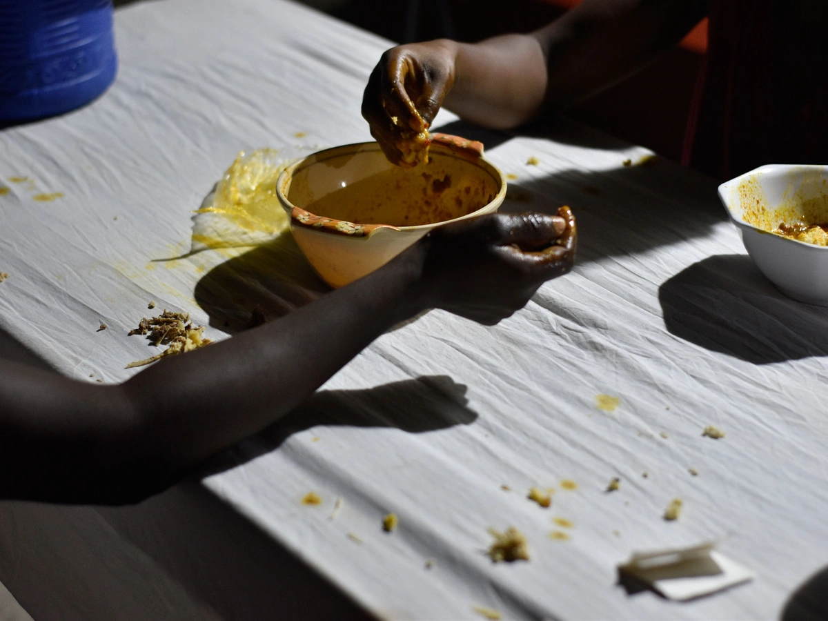 Traces and imprints left by participants on the "tablecloth" become compelling documentation, shedding light on the imprints we leave behind in daily interactions within space, environment, and communities. Collecting these prints from diverse cultural, social, and economic spaces, the project aspires to create a diverse juxtaposition of resources, culture, and principles of community values, all woven together through the profound ritual of dining.