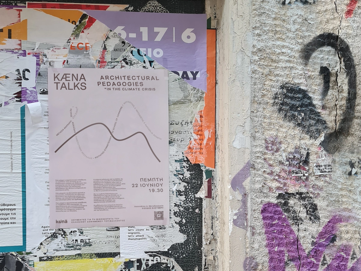 Despite living through the consequences of irreversible anthropogenic damage to the earth’s ecosystem, and while social and spatial injustices grow, the discipline of architecture has been slow to confront the complex and unsettling topic of the climate crisis. Responding to the prevailing architectural discourse in Greece, where the intersections of architecture and the environmental crisis were hardly discussed, KÆNA initiated its public programme in 2021 in order to take action to address the climate and ecological emergencies within the architectural community.