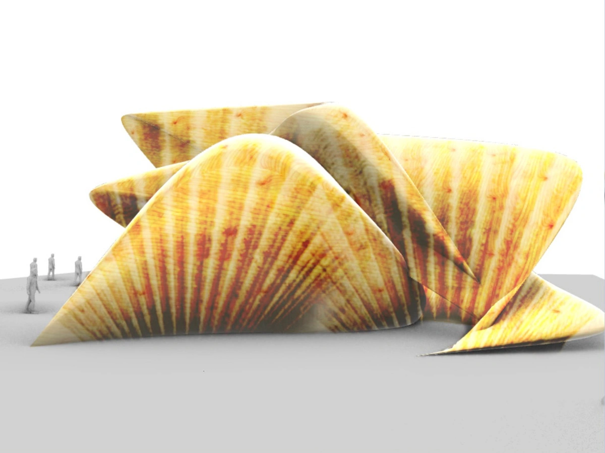 Il padiglione nasce dall’ispirazione del fenomeno della risonanza di Helmholtz, tipica delle conchiglie, in generale di qualsiasi oggetto che presenti delle cavità. La conchiglia accoglie l'aria nelle proprie cavità, la fa rimbalzare e poi uscire in direzione del nostro orecchio. Durante questo fenomeno alcune onde vengono silenziate e altre amplificate e ciò a che vedere con la forma e le dimensioni della struttura che fa da cassa di risonanza. Ho iniziato a lavorare a questo progetto durante una fase di modellazione libera su Rhinoceros. La forma architettonica vuole ricondurre il visitatore all’idea di una conchiglia. Entrandovi, potrà isolarsi dal frastuono cittadino, grazie ad un ambiente insonorizzato, una camera anecoica che ricorda le vibrazioni e i suoni che sentiamo, quando avviciniamo una conchiglia al nostro orecchio. Penso che l'elemento più riuscito sia la forma organica della struttura, un design che contestualizzato in un centro cittadino, può spezzare la monotonia del panorama urbano, ma anche creare un elemento di valorizzazione culturale e artistica per la città.