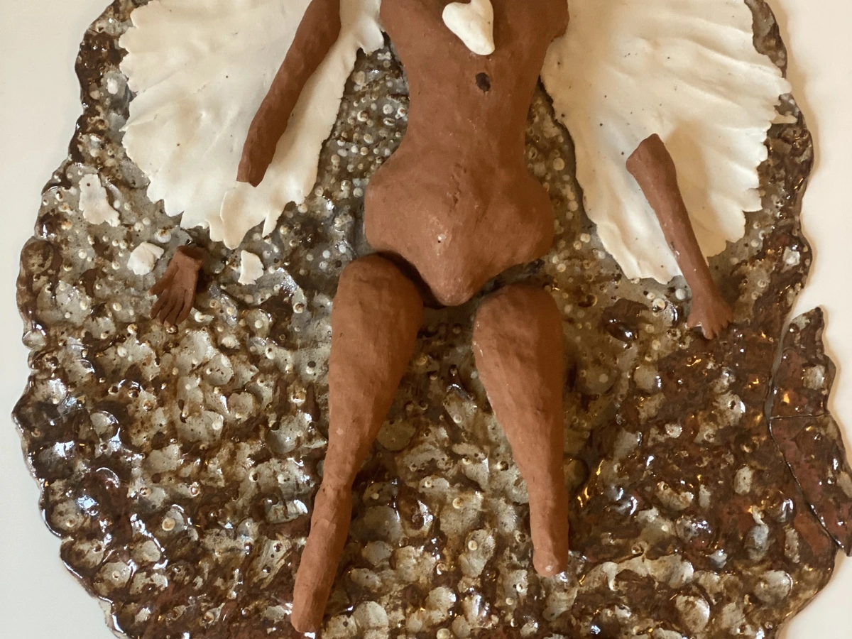 ceramic objects representing the 3 states embodied in gestures and hand expressions :of anger, soft surrender and transcending .