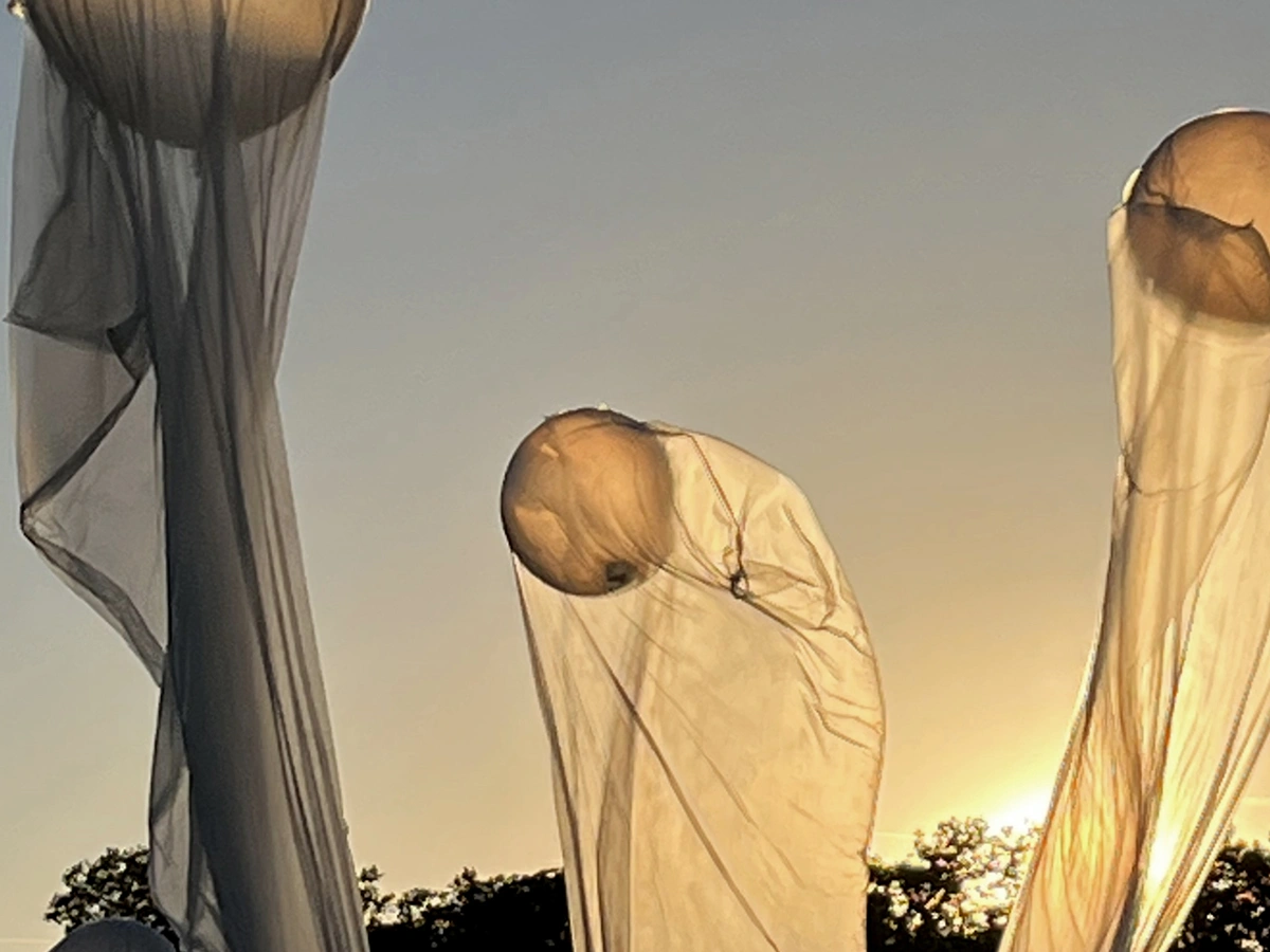 The skin of the columns, made of a very light plastic, was stretched and lifted by 0.5m3 of helium. The softness and malleability of all the materials made it sensitive to weather conditions - similar to every other element in the garden. For every gust of wind, the columns would move in a particular direction and, located among the diverse vegetation of the site, each one of them would respond differently at a given time. Depending on the humidity of the air, everything would move slower and the temperature would also affect the resistance of the helium.