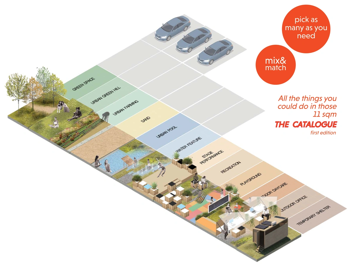Car-space-by-car-space is structured as a provocative catalogue of modules imagining alternative uses for the standard 11sqm of a car space, and challenging the parameters that define our cities by doing so. The car has been one of the main parameters for the organisation of urban spaces since its appearance, that needs to be questioned in this moment of crisis of the status quo. Car-space-by-car-space does it by questioning the hierarchal organisation of our cities which prioritise cars over people, and by exploring alternative scenarios for post-Covid public urban areas, starting from the grids that shape them: both the primary grid on which Malta’s capital city Valletta was built and the secondary grids that organise spaces within the primary one. In the case of Valletta, the borders of the primary grid are generally organised by the secondary grids of carparks or occupied by trafficked roads, embedded in 16th century bastions overlooking the Mediterranean sea. St. Michael’s bastion carpark is a primary example; when it was emptied by the Covid emergency, we took it as an opportunity to test alternative futures for the densely urbanised Maltese heritage, re-imagining it car space by car space – literally. The exploration of potential new uses of the 11 sqm of a car space led to a catalogue of 12 modules that range from temporary shelter to performance space. The modularity and the simplicity of the catalogue, inspired by Enzo Mari, make it adaptable to any urban scenario, at any scale: a single car park in a side street could turn into a stage for a performance, just like St. Michael’s carpark could offer new outdoor working spaces for the surrounding offices. By combining the modules in different ways in relation to specific contexts, the car-space-by-car space catalogue makes use of the grid while breaking its rigidity, dismantling the hierarchy of urban centralisation, traditionally revolving around the privileged city centre and the use of the car.