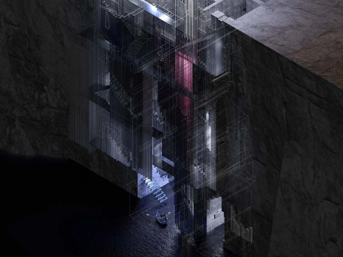 The project’s architectural intervention, The Registry, actively engages with the Bay’s past, present and future water conditions. It archives coring samples and analyses the Bay through a series of cut-out thinking and writing spaces - whilst re-registering the cliff face it occupies. It aims to highlight the ecological and environmental precarity of the terrain - an area deeply impacted by seismological shifts and marine pollution.